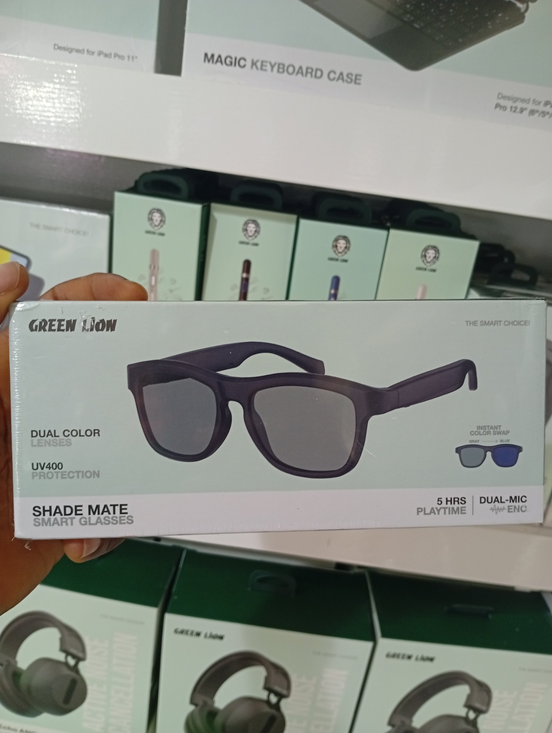 This Brand New Green Lion smart glasses combine fashion with technology, they are not just your ordinary shades, they let you enjoy music, answer calls and the polarized UV400 lenses protect your eyes from harsh sunlight, all at the same time.