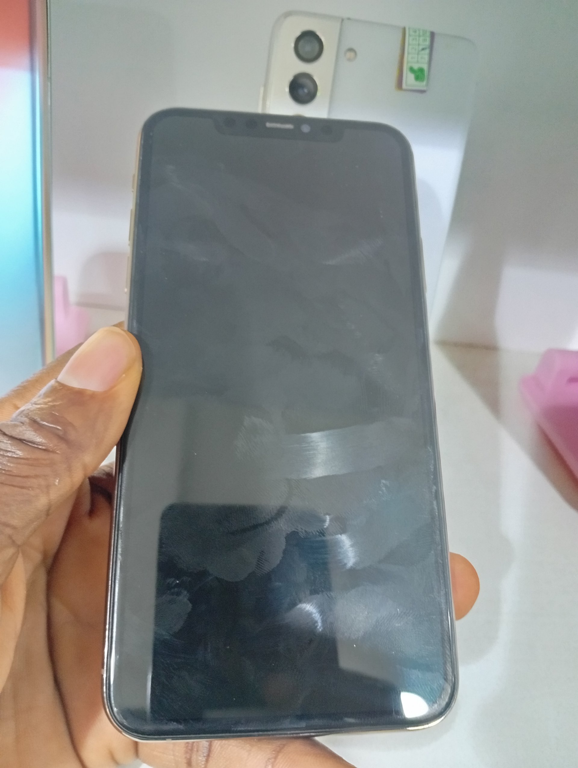 Top grade UK used Apple iPhone 11 Pro Max. Powered by Super Retina XDR OLED 6.5" Screen, Apple A13 Bionic (7 nm+) Hexa-core 2.65GHz Processor, 256GB Storage, sharp Triple 12 MP / 12 MP / 12 MP Main Camera, Lightning USB 2.0 Fast Charge (50% in 30 minutes), Wireless Charging, Face ID, IP68 Dust/Water Resistant (up to 4meters for 30 minutes), iOS Operating System and very good Battery.